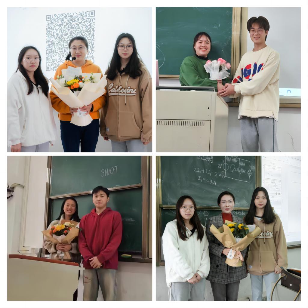 此外,学院的学生们也积极参与到这一活动中来。在课堂、实验室等不同场合,他们通过赠送鲜花的方式,向老师们表达了节日的祝福。这些小小的举动,不仅让老师们感受到了节日的喜悦,更让她们体会到了深深的感动和关怀。女职工们幸福地表示,她们将视校如家,全力以赴,为学校和学院的高质量发展贡献自己的力量。