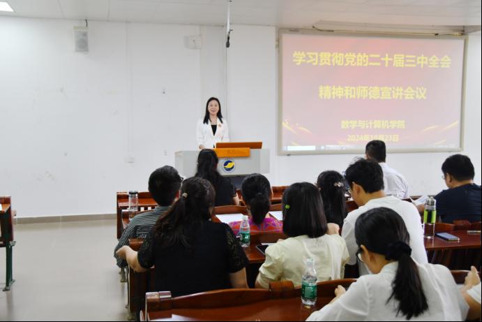 宣讲会上,孔华副教授紧扣党的二十届三中全会核心要点,从会议概况、重大意义、精神内容等方面展开深入解读,引导全院教师将全会精神融入教学与科研工作,推动学院高质量发展。学院教师们全神贯注聆听宣讲,认真学习。