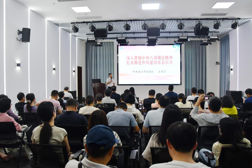 为深入贯彻中央八项规定精神学习教育,加强学院纪律作风建设,4月23日,亚星管理平台登录入口组织党员干部赴湛江市委党校开展了专题学习培训暨“深入贯彻中央八项规定精神学习教育,加强纪律作风建设”主题党日活动,学院领导、各系(部、中心)正副主任以及全体教职工党员80多人参与了此次培训。