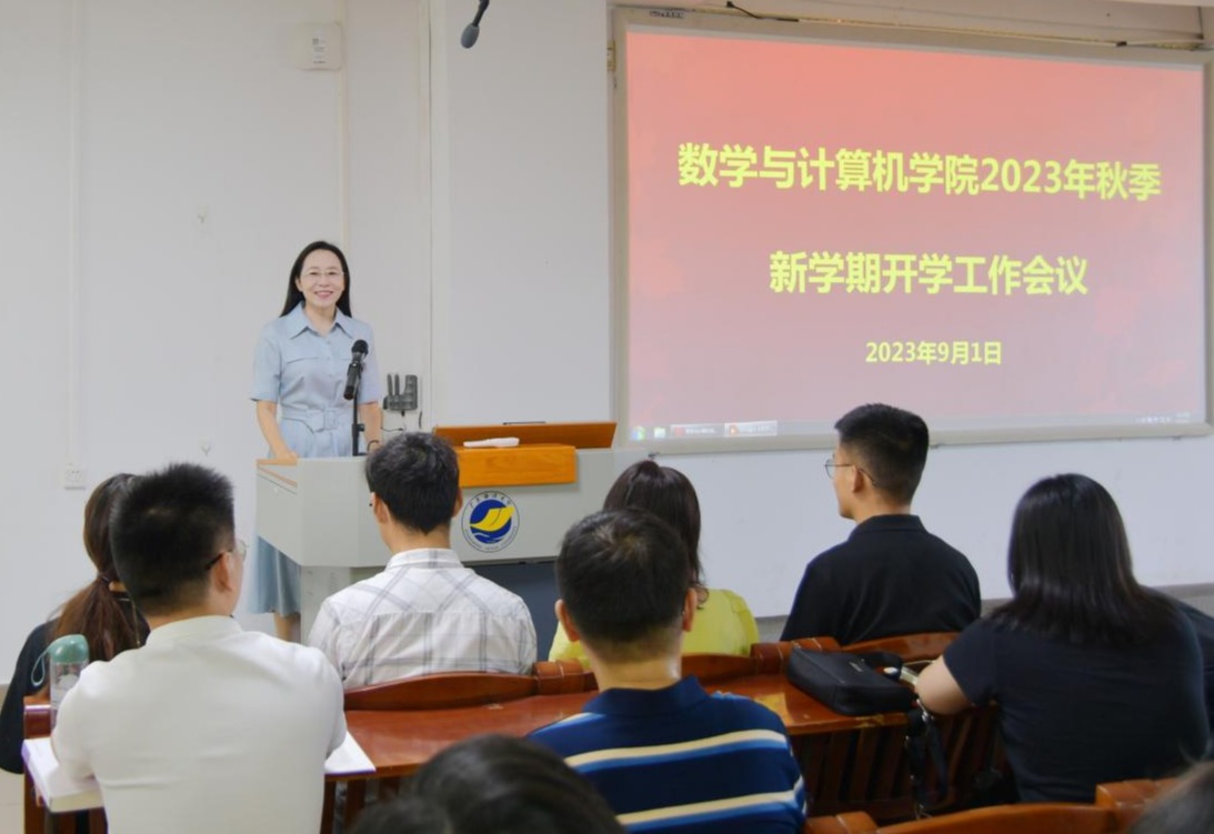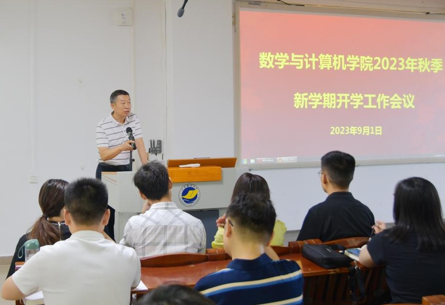 随后,彭小红对2023年秋季新学期的工作要点进行了部署,对巩固主题教育成果;加大人才引进力度,加强教师教学科研能力提升和加强师德师风建设;认真开展教育教学审核评估工作;积极准备软件工程专业认证专家进校考查;深入推进一流专业建设;加强教学团队建设、教育教学研究工作;实施有组织科研,加强学科交叉融合;做好学位点周期性合格评估和数学学科硕士点培育工作;加强学术交流,积极主办国际学术会议;完善三全育人工作体系,抓好学风建设,加强学生心理健康教育,持续做好就业和创新创业等方面的工作做了详细布置,并对开学初的教学工作、学生安全返校等做了重点强调。