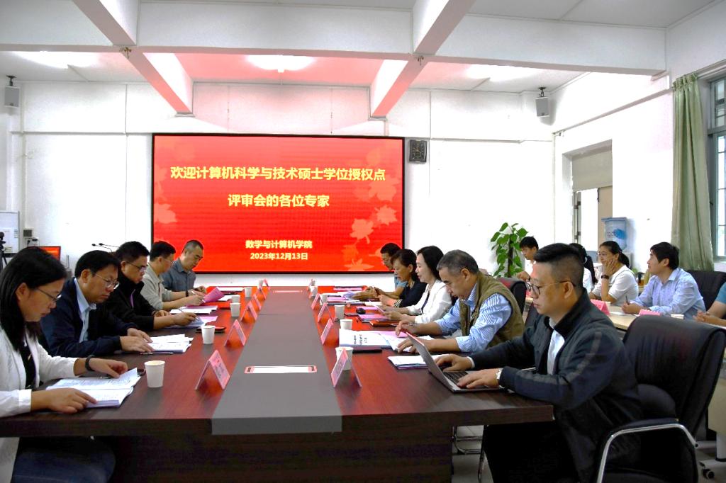 2023年12月13日,在湖光校区明德楼A 405会议室召开了计算机科学与技术一级学科硕士学位授权点自我评估专家评审会。此次会议邀请广东工业大学计算机学院博士生导师程良伦教授、清华大学软件学院博士生导师赵曦滨教授、华南理工大学计算机科学与工程学院博士生导师蔡宏民教授、岭南师范学院计算机与智能教育学院院长杨俊杰教授、华南农业大学信息学院博士生导师梁云教授、广东恒电信息科技股份有限公司董事长高静6位专家,组成专家组,对计算机科学与技术学位授权点进行深入的诊断和评审。